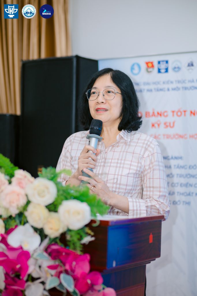TS. KTS. Ngô Thị Kim Dung – Phó hiệu trưởng nhà trường, phát biểu chúc mừng và dặn dò các Tân kỹ sư