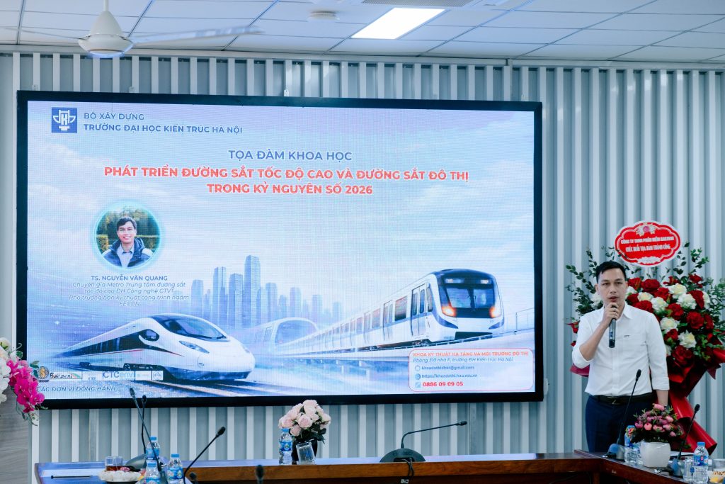 Ngày 31/3/2026, Trường Đại học Kiến trúc Hà Nội đã tổ chức Tọa đàm khoa học với chủ đề “Phát triển đường sắt tốc độ cao và đường sắt đô thị trong kỷ nguyên số 2026”, thu hút sự tham gia của các nhà khoa học, chuyên gia, doanh nghiệp cùng đông đảo giảng viên và sinh viên.